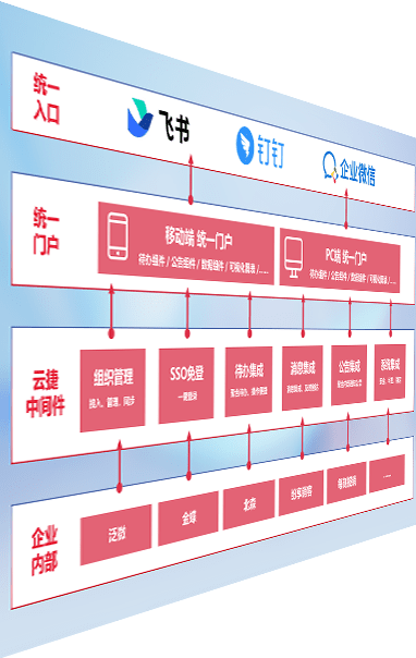 对协作平台提供支持服务,,,支持企业应用与协作平台对接,,,,包含组织同步、、、消息集成、、、待办集成等。。支持目前主流的协作平台:钉钉、、企微和飞书。。。。